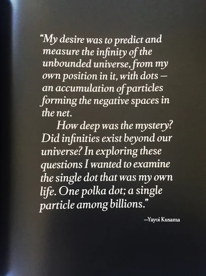 Love this mission statement from Yayoi Kusama... so thought-provoking.