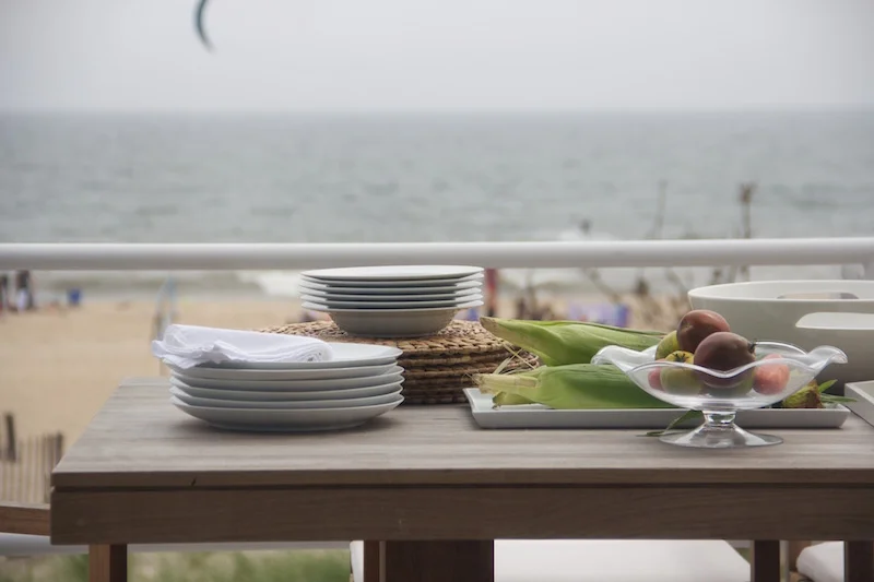 At this beach house renovation, we painted everything outside white except for the flooring and the Kaku slab teak dining table from DWR... the sun weathered it grey and now it blends perfectly with the environment!